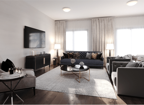 - Type A: A cozy 1531* sqft two-story townhome featuring three bedrooms, three bathrooms, a modern living & kitchen area, breakfast nook, office space, and expansive windows that flood the space with natural light.